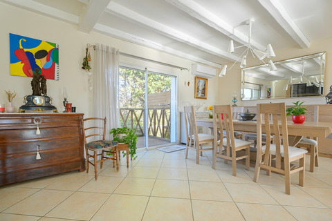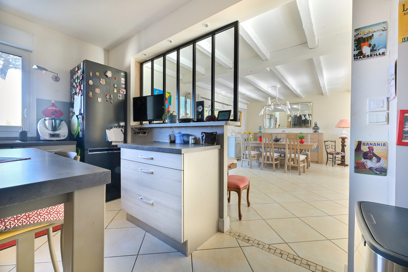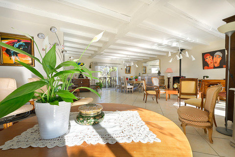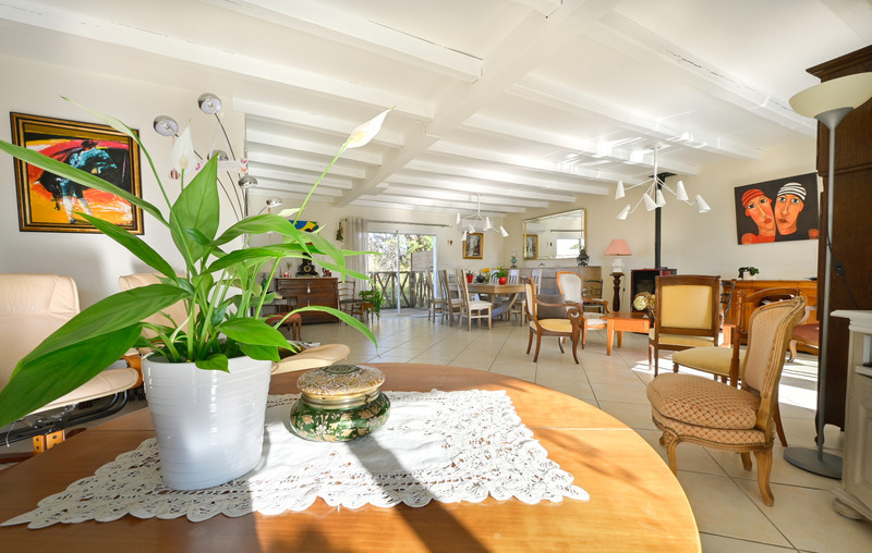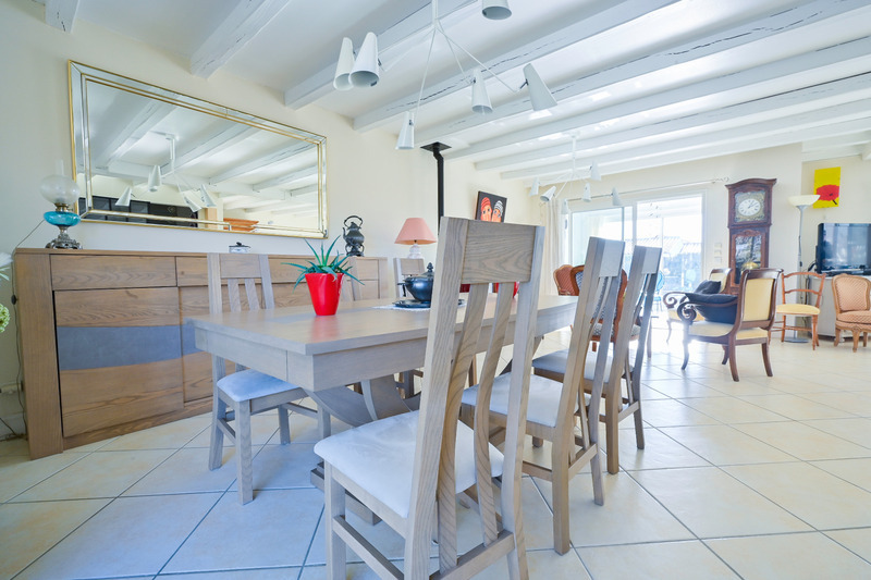 Vous constaterez, dès l'entrée, que la maison possède de beaux volumes et qu'elle est lumineuse. La pièce de vie fait environs 60 m² prolongée par une véranda qui donne sur une terrasse et la piscine.