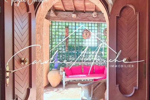 La maison dispose également de deux garages fermés et de stationnements intérieurs, d'un jardin sec facile d'entretien, de terrasses ombragées. Le terrain est piscinable.