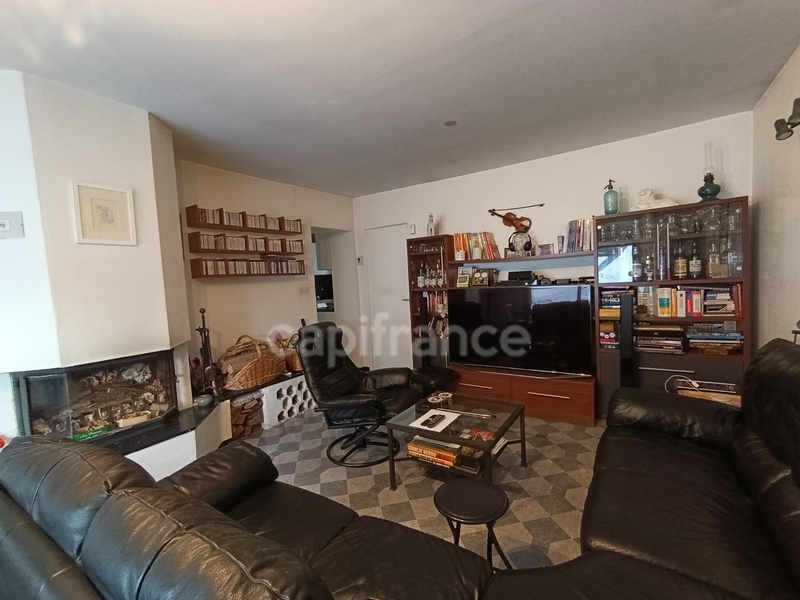 Elle se compose d'un agréable salon-séjour lumineux de 23 m², orienté sud-ouest et agrémenté d'une cheminée à feu de bois, parfait pour des moments conviviaux en famille.